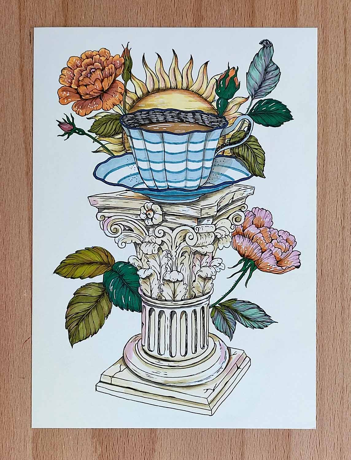 • Painted by hand with alcohol-based markers on paper.