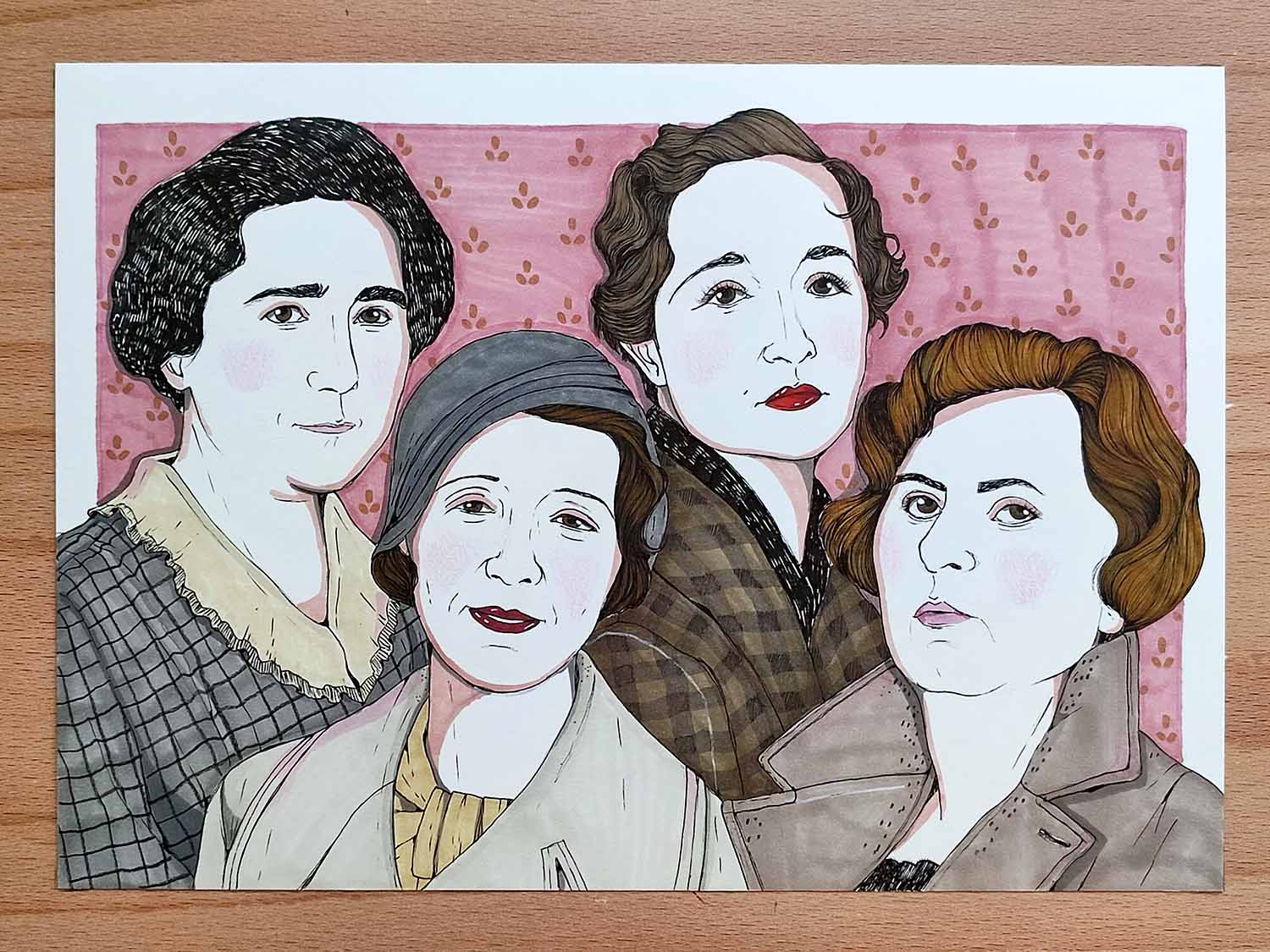 Some distinguished professors of the The Residence for Women Students in Madrid: María Goyri, María Zambrano, Maruja Mallo and Victoria Durán.