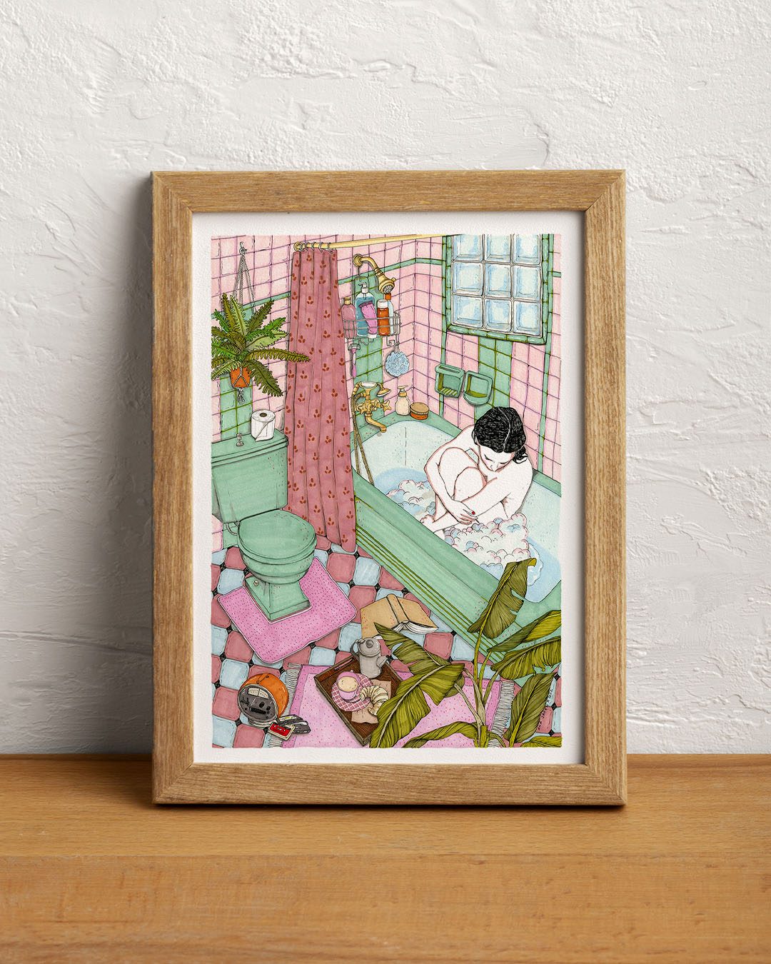 Loneliness I is an evocative and introspective illustration by Spanish artist Ana Jarén, portraying a solitary figure bathed in soft light within a simple, tender interior setting. Filled with cozy textures—such as gentle drapery, classic ceramic vessels, and a lounge chair next to a window—it captures a moment of quiet contemplation and emotional depth. This artwork is ideal for adding a thoughtful, intimate touch to home decoration.