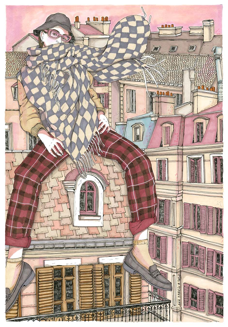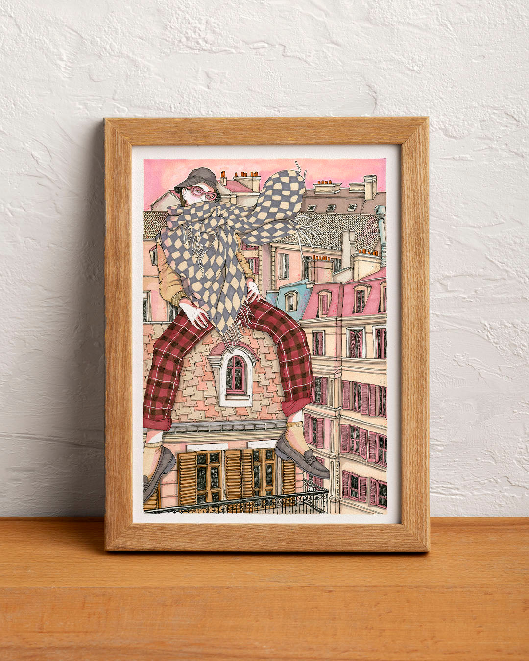 On the rooftops you can think better is a contemplative illustration by Spanish artist Ana Jarén, offering a serene, elevated view of city rooftops that evokes quiet reflection and clarity. Rendered in her characteristic rich, detailed style, this artwork makes a beautifully atmospheric addition to any interior decoration.
